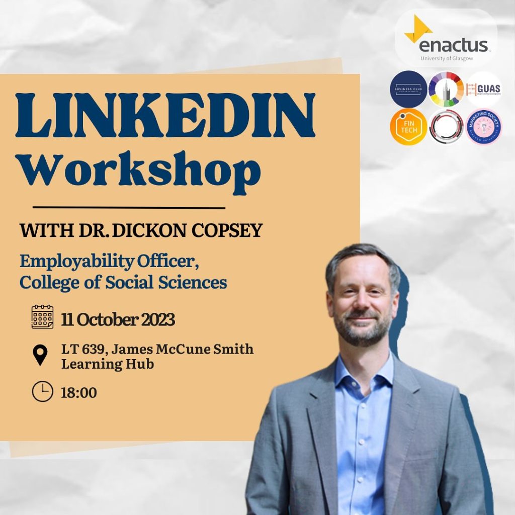 Join us at the LinkedIn Workshop 2023 and learn how to optimise your LinkedIn profile with insights from Dr. Dickon Copsey, Employability Officer at the College of Social Sciences.