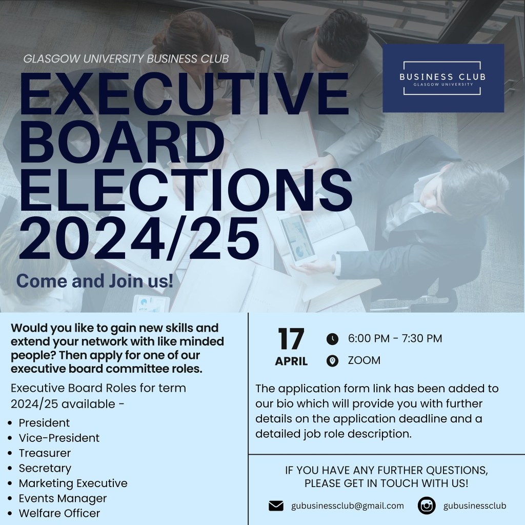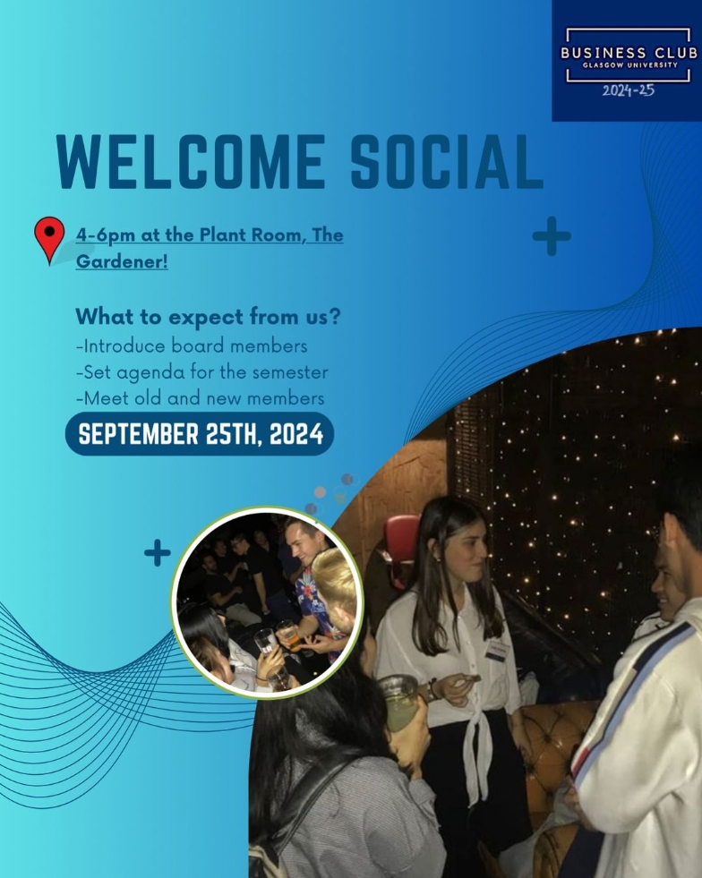 The Glasgow University Business Club is excited to welcome all new and returning students to our Fresher’s Stall on the 13th and 14th of September, from 10 AM to 5 PM. Whether you’re passionate about business, entrepreneurship, or simply eager to expand your network, this is the perfect chance to learn more about our club, meet fellow students, and discover the incredible opportunities we offer. Stop by, say hello, and get involved in one of the most dynamic societies on campus. We can’t wait to meet you!